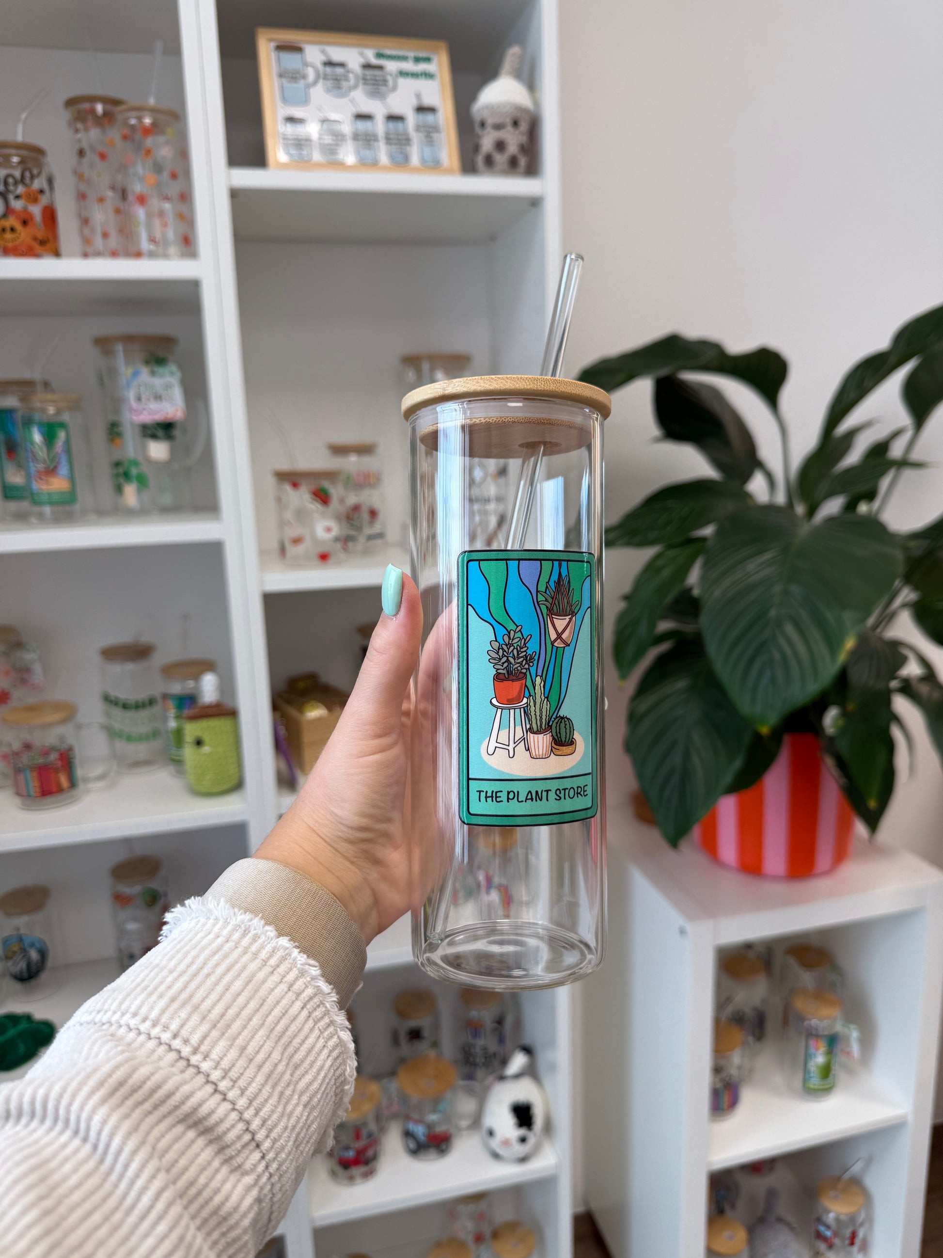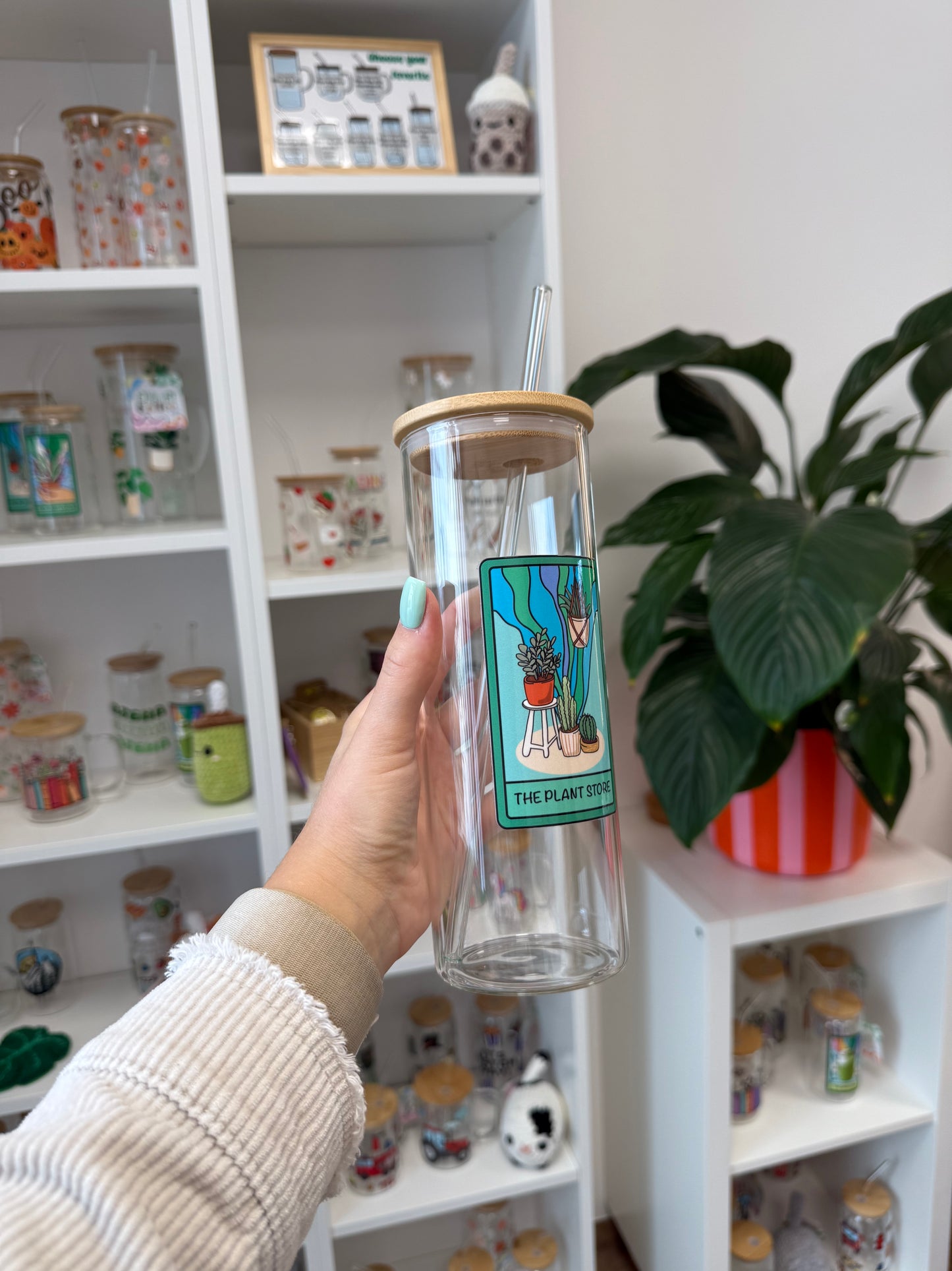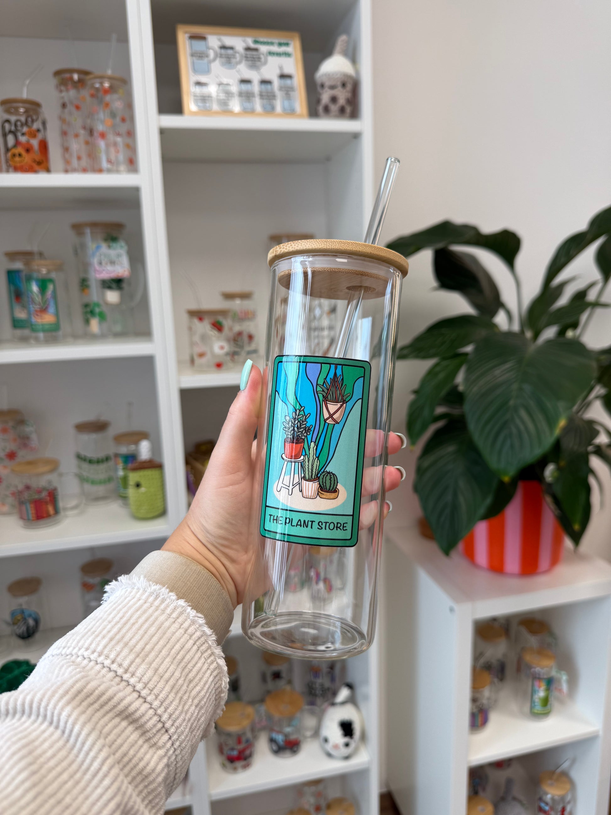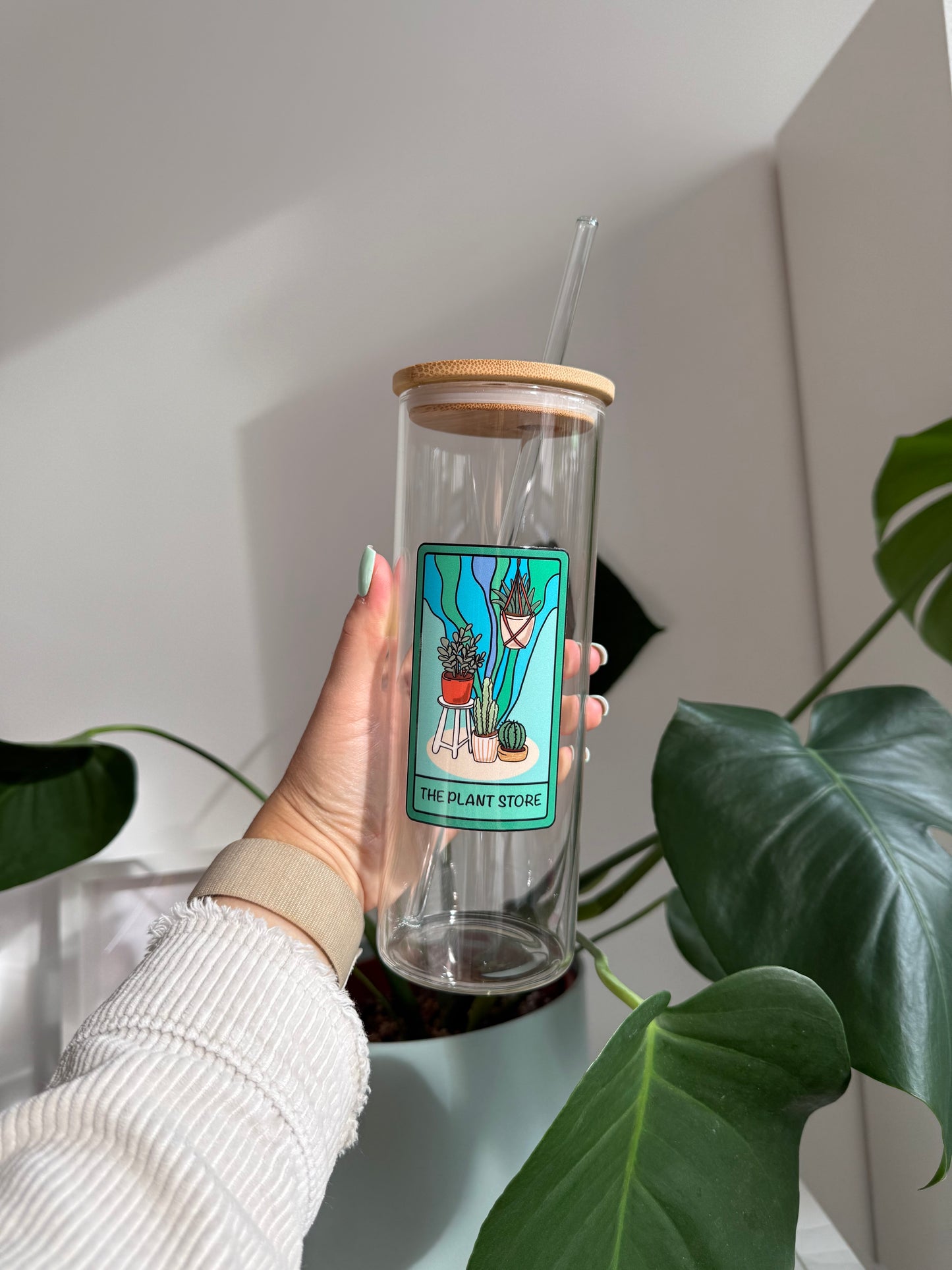 Dieser Glass Tumbler fasst circa 740ml von deinem Lieblingsgetränk! Er ist mit dem Design „Plant Store“ gestaltet.
