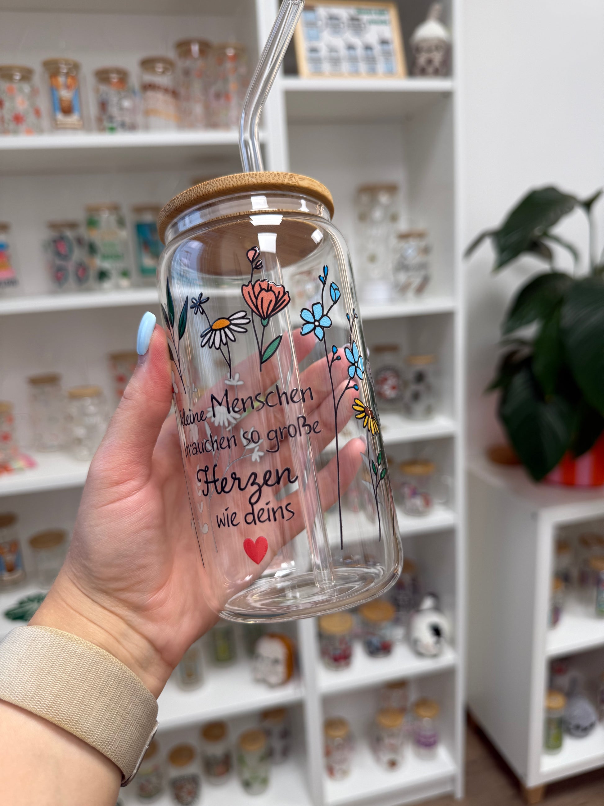 Der Bambusdeckel und Glas Strohhalm sind optional und können hinzu oder abgewählt werden.